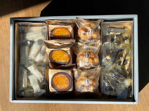 14種糕餅(月餅)蛋奶素:金月娘,軟玉酥,松子酥,芋黃酥,蛋黃酥,抹茶酥 奶素:素芋頭酥,素綠豆椪,鴛鴦酥 葷食:滷肉酥,咖哩酥,富貴酥,香菇滷肉酥,綠豆椪、 |